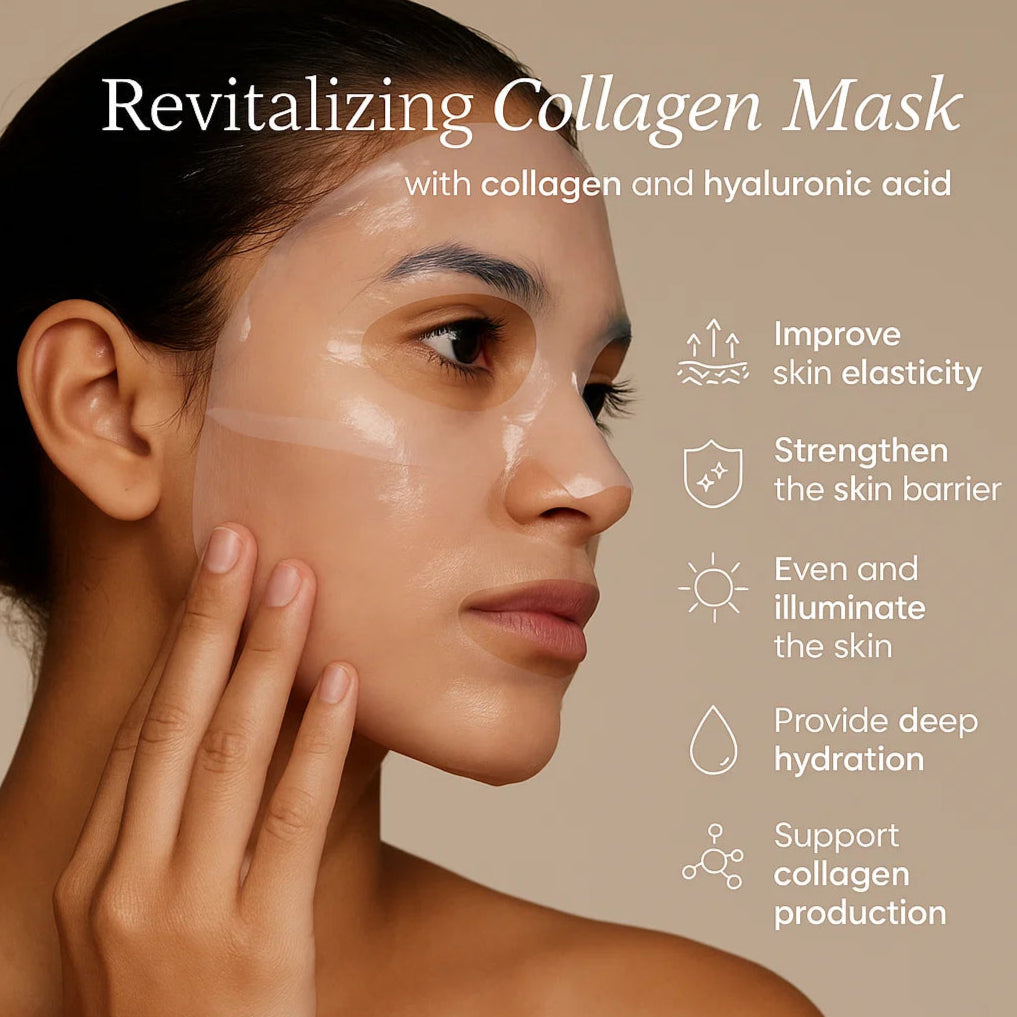 The Collagen Mask by SkinCurrent is a highly effective facial treatment designed to deeply hydrate your skin and support natural collagen production. It features an exclusive formula of premium collagen, hyaluronic acid, and antioxidant ingredients that help reduce fine lines, firm the skin, and promote a radiant complexion.